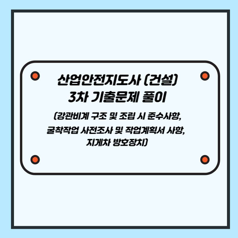 2024.06.27 - [산업안전지도사_3차] - 산업안전지도사(건설) 3차 기출문제 풀이 (산업안전보건위원회, 안전 및 보건에 관한 협의체, 노사협의체 비교 / 재해빈발자 유형 및 안전대책 / 높이 5m 이상의